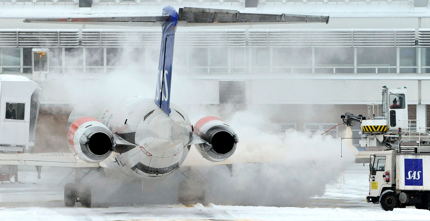 Snöyra orsakar stora förseningar på Arlanda