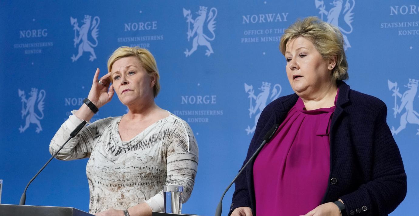 Även Fremskrittspartiets ledare Siv Jensen var på presskonferensen.
