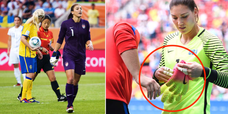 Under en uppmärksammad straffläggning 2016 mellan Sverige och USA bytte stjärnmålvakten Hope Solo plötsligt handskar, något som fördröjde Lisa Dahlqvists straff. Då hette det att handskarna var trasiga. Men i en intervju med Sportexpressen säger Solo nu att hon pressades av fotbollsledningen att förstöra handskarna för att framtvinga ett orosmoment.