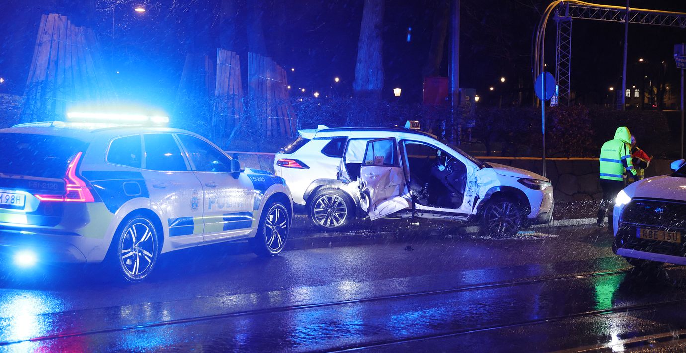 Spårvagn och taxi i krock – tre till sjukhus