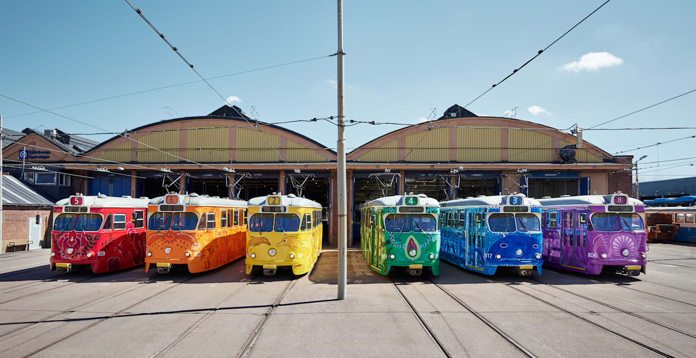 Europridefirandet i Göteborg sätter även sin prägel på stadens spårvagnar, skriver Aftonbladet. Mellan onsdag och lördag kommer nämligen sex vagnar i regnbågens färger att trafikera gatorna.