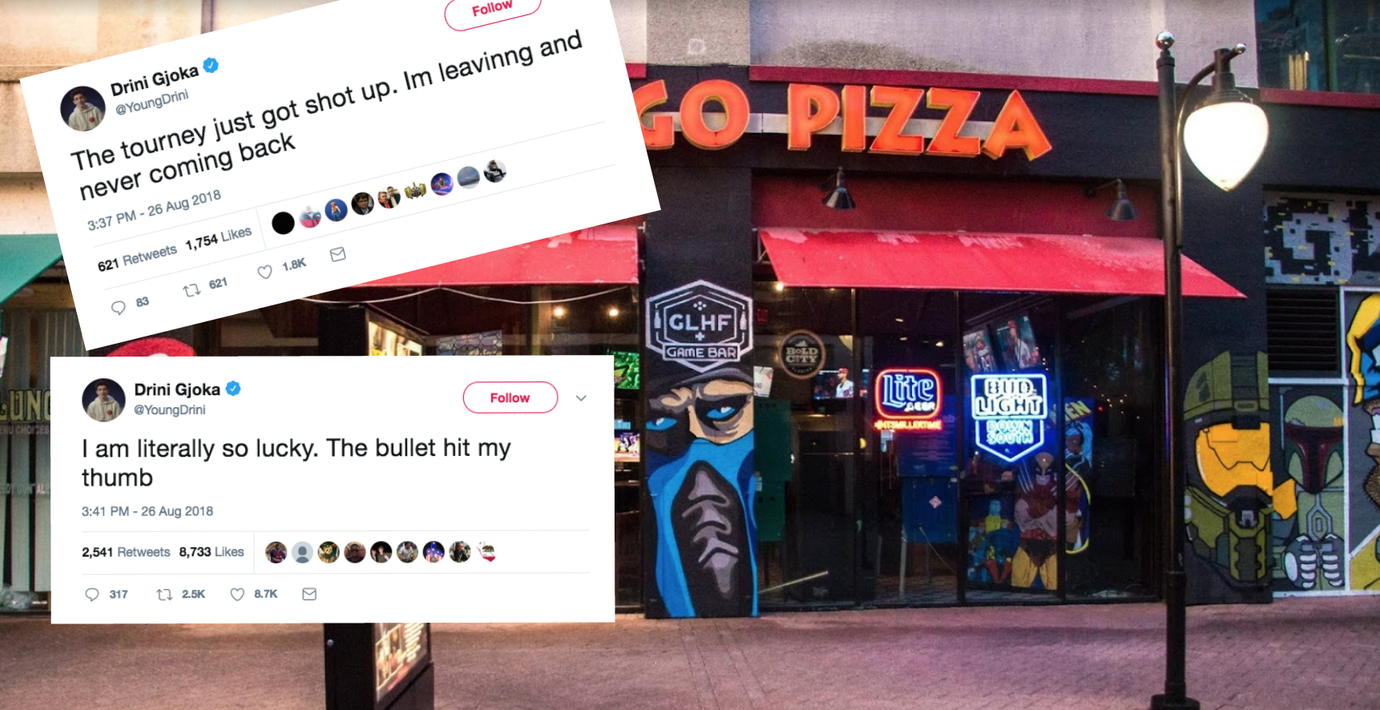 En av deltagarna, Drini Gjoka, twittrar själv om att han träffades i skjutningen: