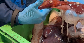 Bläckfisken var närmast geléaktig och inte lämpad att äta, så Göteborgs fiskauktion kontaktade i stället SLU, som hänvisade till Tjärnö marina laboratorium i Bohuslän. Där har marinbiologen Christin Appelqvist nu dissekerat spökkraken.