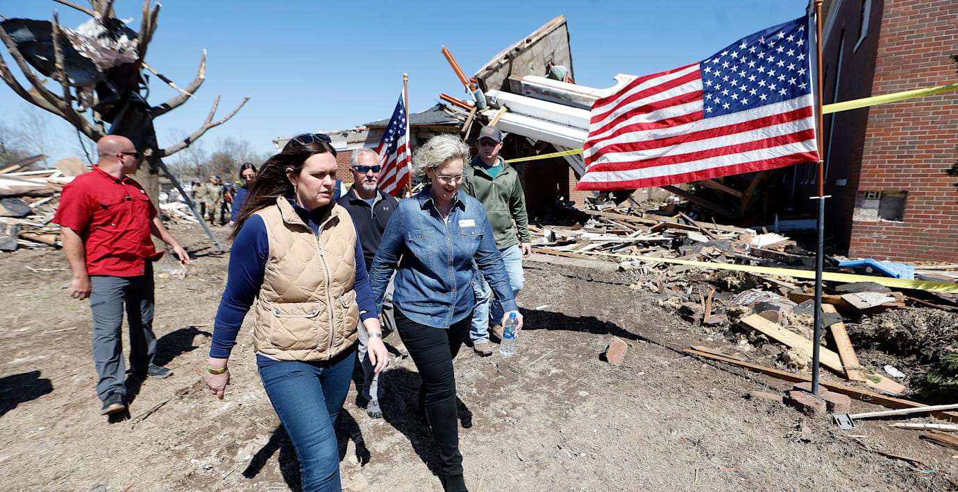 Arkansas guvernör Sarah Huckabee Sanders, som besökte Wynne i helgen, utlyste undantagstillstånd i delstaten, skriver AP.