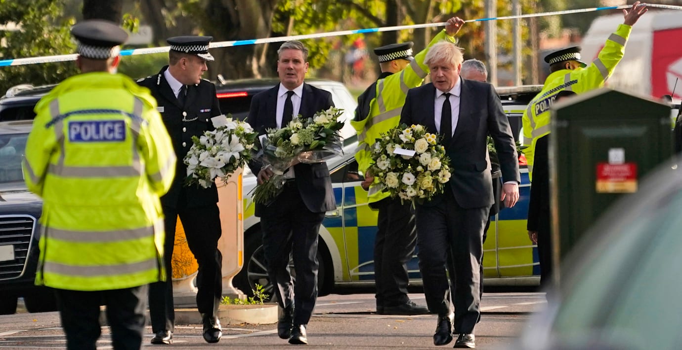 Johnson och Starmer lade ner blommor utanför den kyrka där Amess knivhöggs till döds med flera hugg.