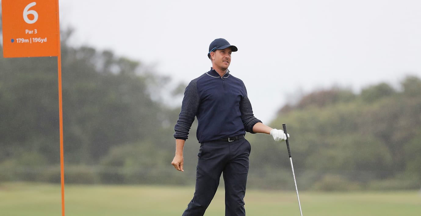 På det tredje hålet, ett par fyra, tvingades han dock droppa efter att ha slagit bollen i vattnet, men lyckades ändå ta sig igenom på fyra slag.