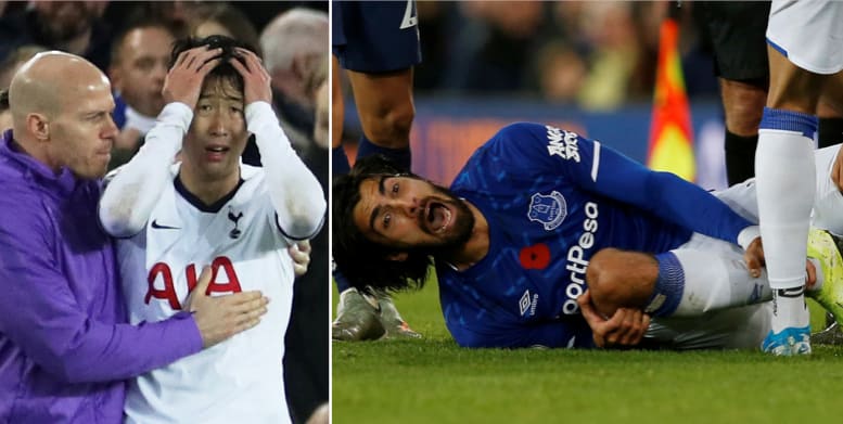 Evertons André Gomes åkte på en riktigt otäck skada i Premier League-mötet med Tottenham på söndagen. Tottenhams sydkoreanske stjärna Son Heung-Min kom in sent i en tackling och Gomes fot tycktes sedan fastna i gräset. Foten vred sig i en otäck vinkel och benet tycktes gå av, skriver Fotbollskanalen.