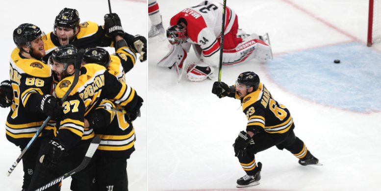 Carolina ledde matchen med 2–1 efter två perioder. Men drygt två minuter in i den sista perioden satte svenske Marcus Johansson det viktiga 2–2-målet i powerplay. Bara 28 sekunder senare slog Patrice Bergeron till efter att ha fått en fin passning från poängkungen Brad Marchand.