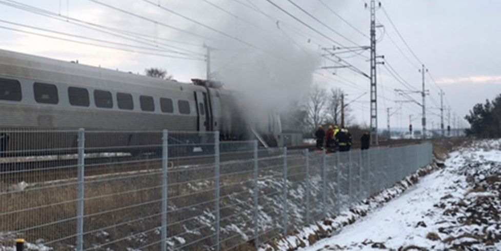 Ett X2000-tåg började efter lunch att brinna. Händelsen inträffade en dryg mil norr om Skövde och kraftig rök syntes från en del av ett lok.
