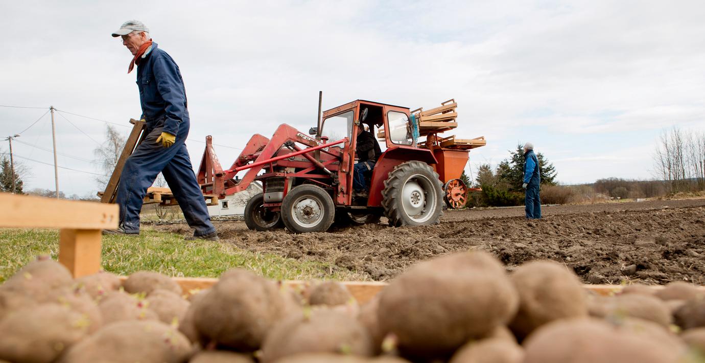 Grönsaksodlaren Anders Norlén på Kilfröslunda gård brukar kunna sälja omkring 500–600 kilo färskpotatis till midsommar. I år blir det ingenting mer än till husbehov.