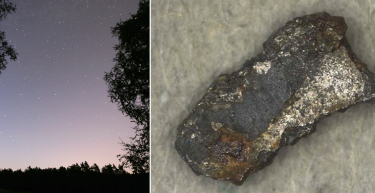 Många samlades för att leta efter stenen efter att ett starkt ljus lyst upp över stora delar av Sverige den 7 november förra året. Men till slut var det geologerna Anders Zetterqvist och Andreas Forsberg som såg den i mossan.
