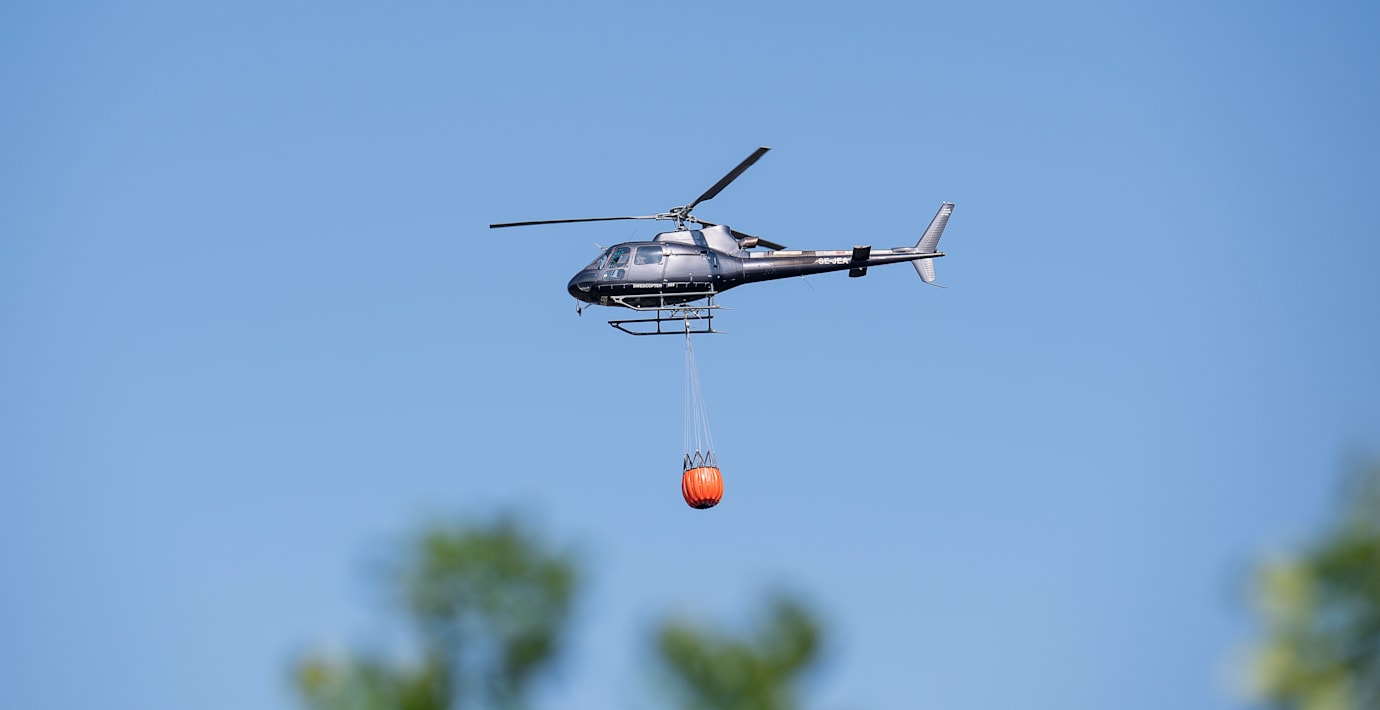 Tolv enheter från räddningstjänsten jobbade med släckningsarbetet och fick hjälp av fyra MSB-helikoptrar att ringa in branden.
