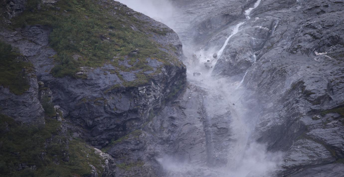 – Det här är det största raset sedan vi började övervaka berget 2014, säger geologen Einar Anda till VG.