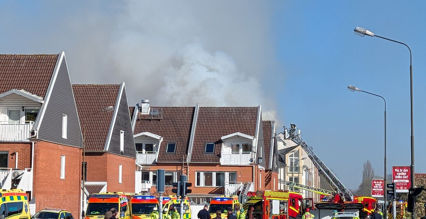 Storbrand i radhus i Malmö – rök stiger över staden