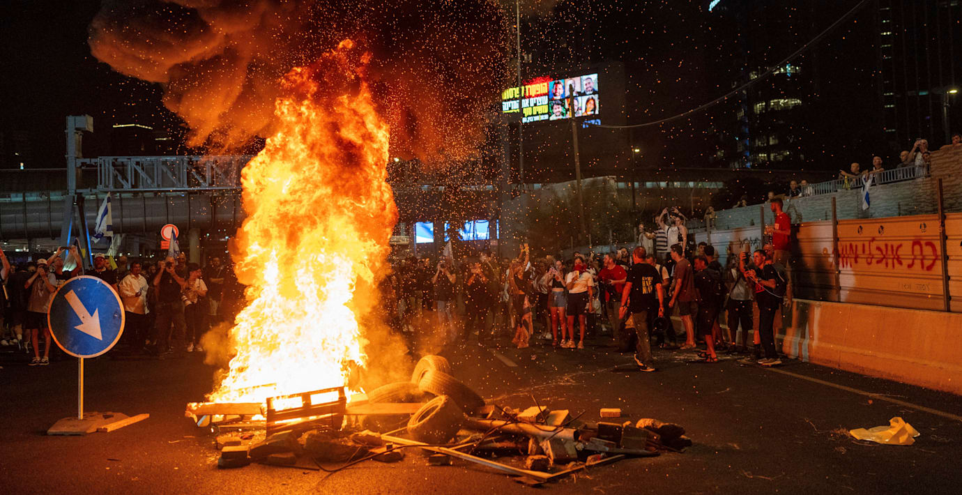 Ett 30-tal personer har gripits efter söndagskvällens omfattande protester i Tel Aviv och flera andra israeliska städer, rapporterar Haaretz. Enligt flera medier kan protesten – som bara i Tel Aviv samlade omkring 300 000 personer – vara den största i landet sedan Hamas terrorattack den 7 oktober förra året.