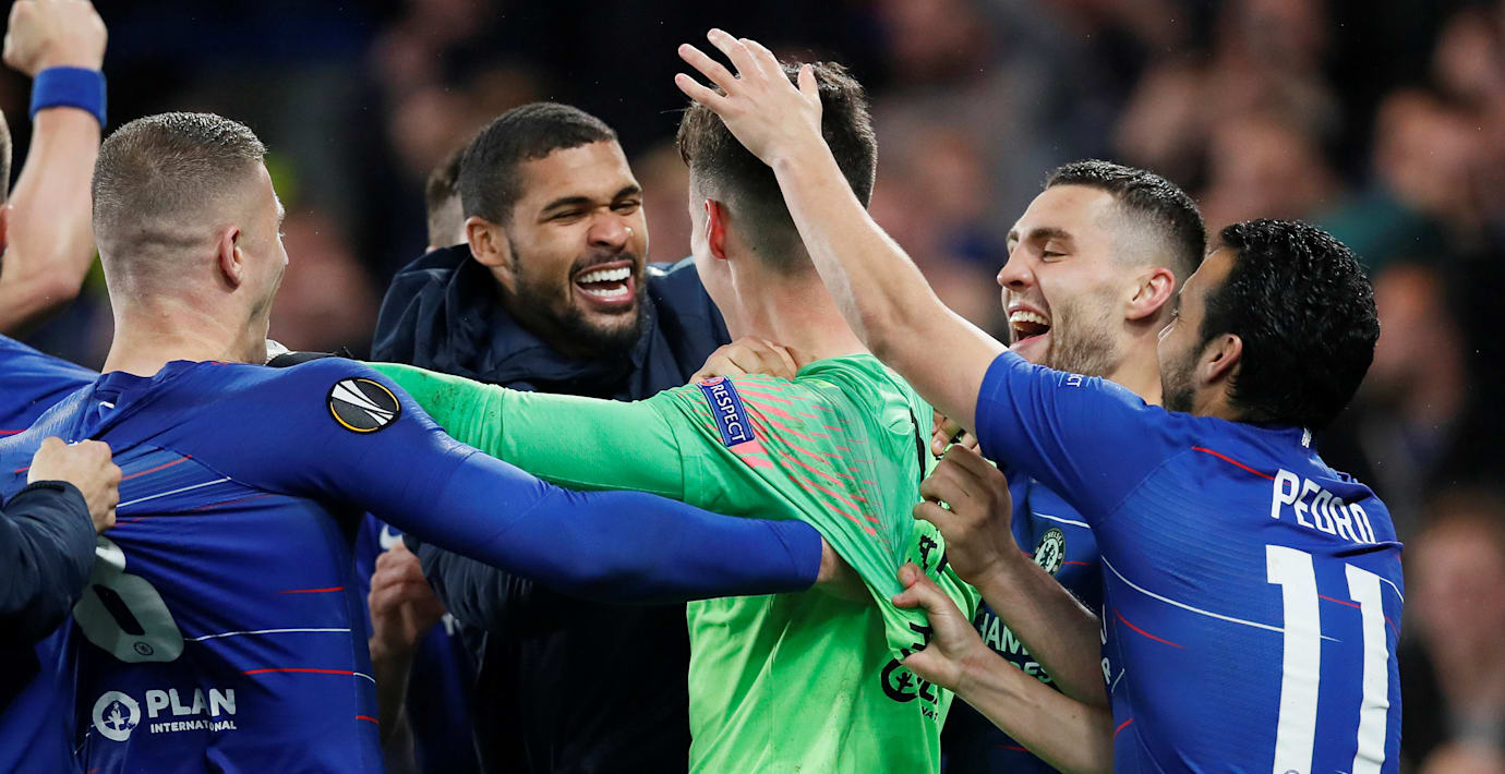 När Arrizabalaga sedan räddade även Goncalo Paciencias straff gjorde Eden Hazard inget misstag utan sköt Chelsea till finalen mot Arsenal i Baku.