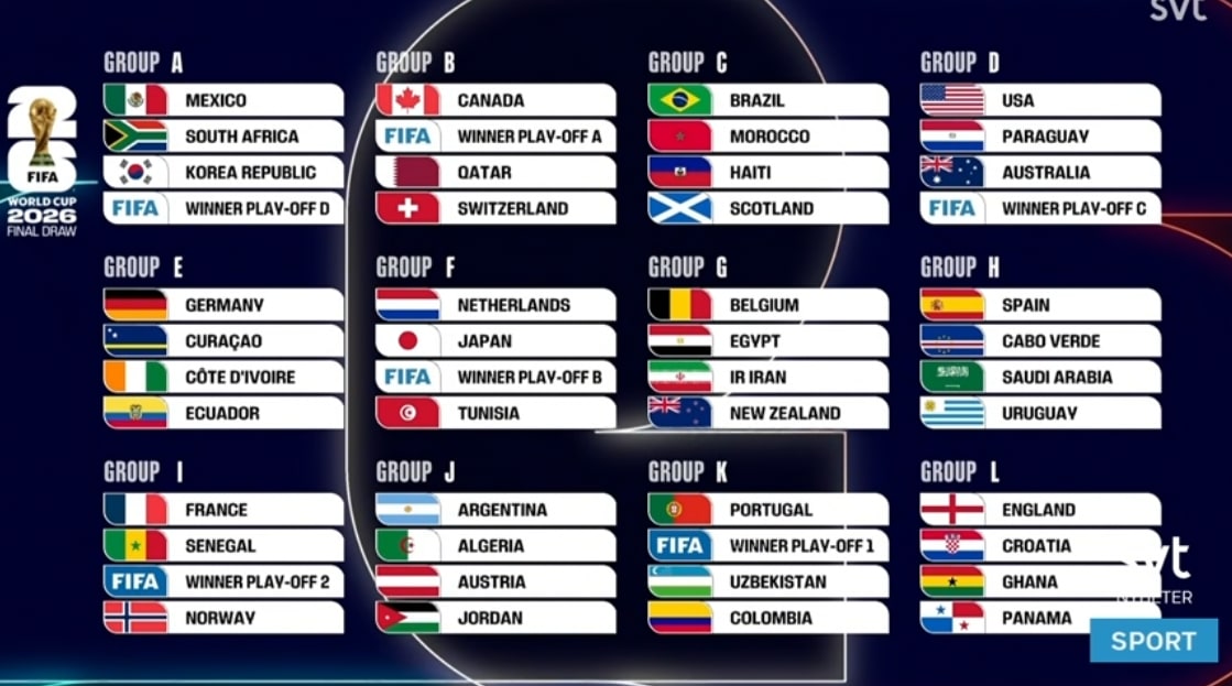 Norge, som imponerade stort i kvalet, får en riktigt tuff grupp. Grannlandet möter Frankrike, Senegal och ett fjärde lag som kan kvalificera sig via playoff. Det fjärde laget blir antingen Irak, Bolivia eller Surinam.