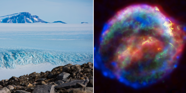 Forskarna, som under 20 års tid har analyserat järnisotoperna i snö på Antarktis, har hittat järn i de översta snölagren. Järnet bildades troligtvis när en supernova exploderade för ett par miljoner år sedan. Att fynden har gjorts i de översta snölagren tyder enligt forskarna på att jorden fortfarande befinner sig i stoftmolnet.