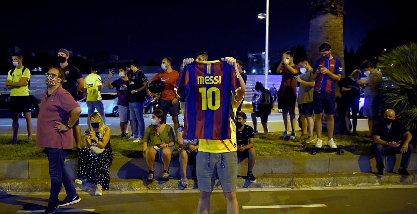 Supportrar samlades vid Camp Nou – stöttar Messi