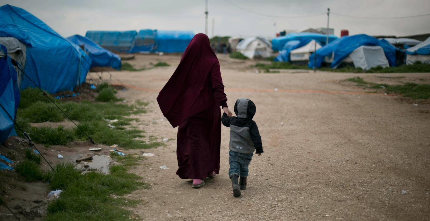 En kvinna och ett barn i al-Roj-lägret. Arkivbild. (Maya Alleruzzo / TT NYHETSBYRÅN)
