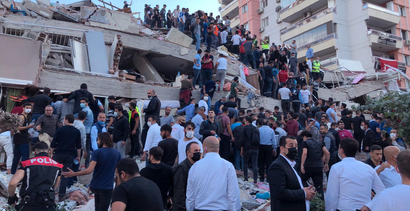 Minst 19 personer har dött och 400 personer har skadats i skalvet som inträffade i Egeiska havet.