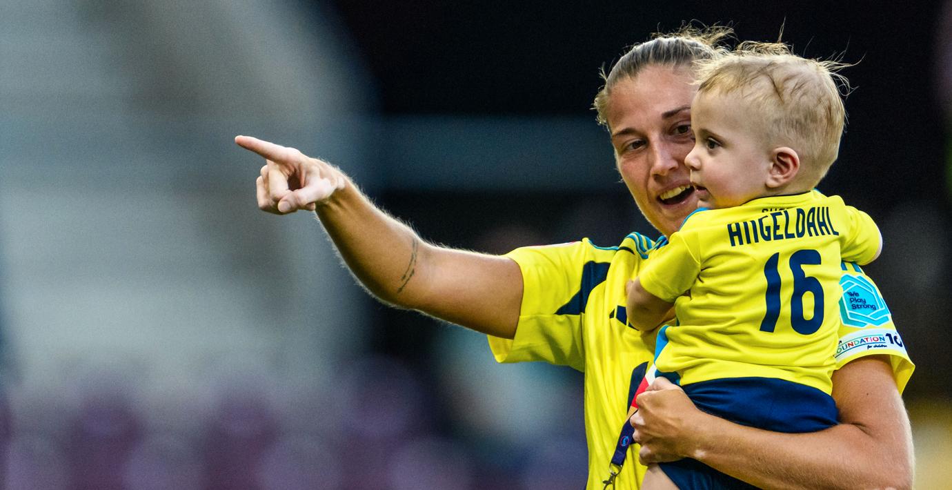 Filippa Angeldahl blev svensk hjälte när hon med matchens enda mål sköt segern till Sverige i EM-premiären mot Danmark. Efter matchen firade hon med sin ettårige son Aston på planen – tills en säkerhetsvakt grep in och satte stopp, rapporterar Sportbladet.