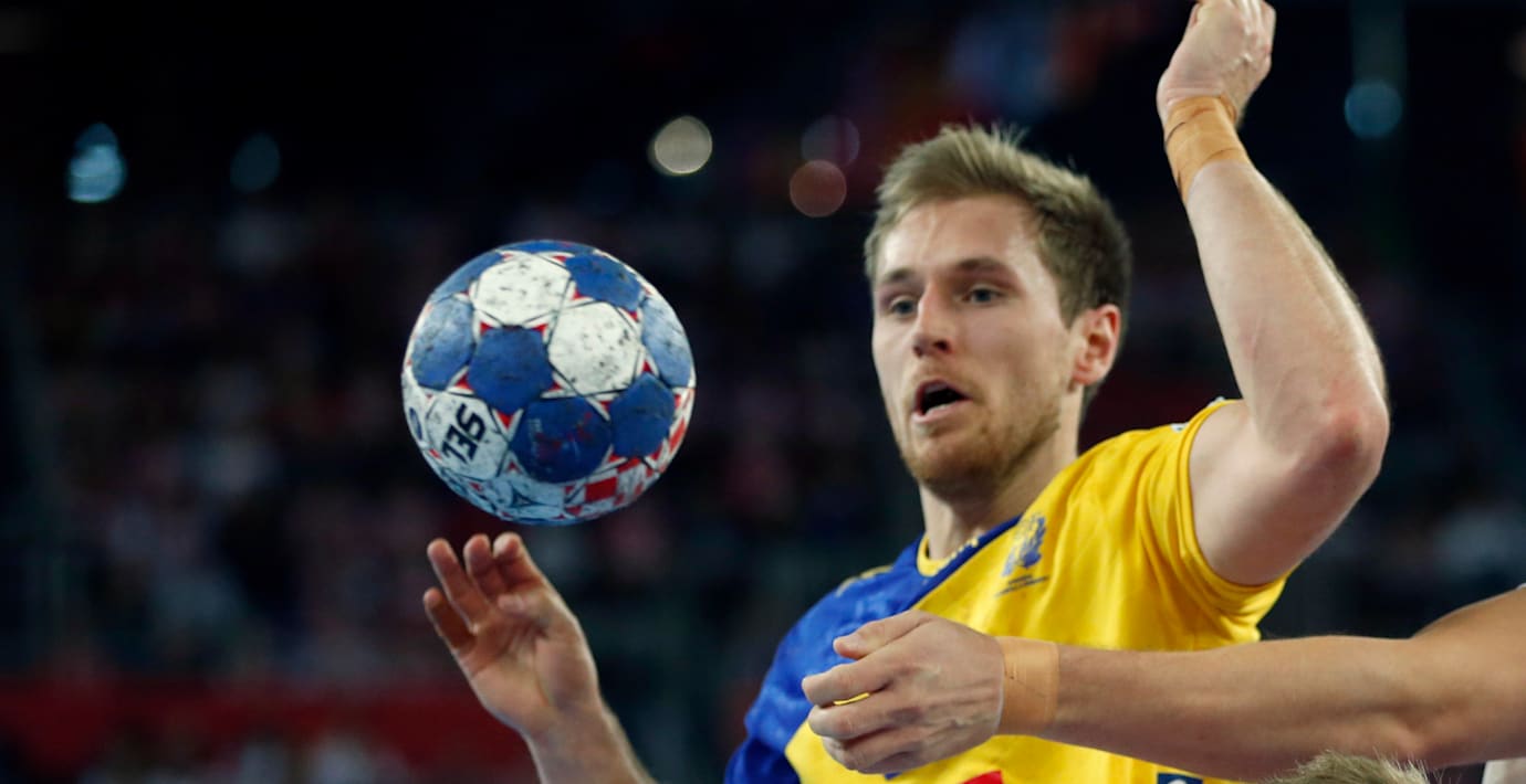 Den svenska handbollsstjärnan Albin Lagergren har fått en hjärnskakning och missar både kvällens semifinal mot Danmark och resten av EM.