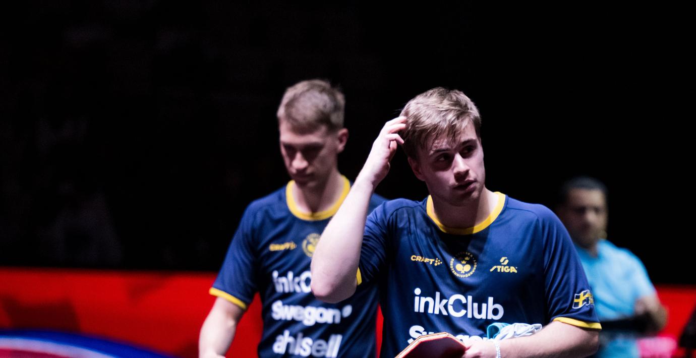 Den svenska bordtennisduon med Truls Möregårdh och Anton Källberg föll tungt mot de franska bröderna Félix och Alexis Lebrun i VM. Det rapporterar TT.