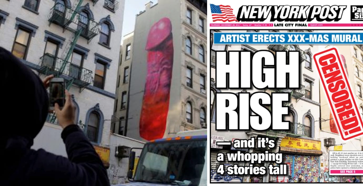 ”Artist erects XXX-mas mural”, skriver tidningen.