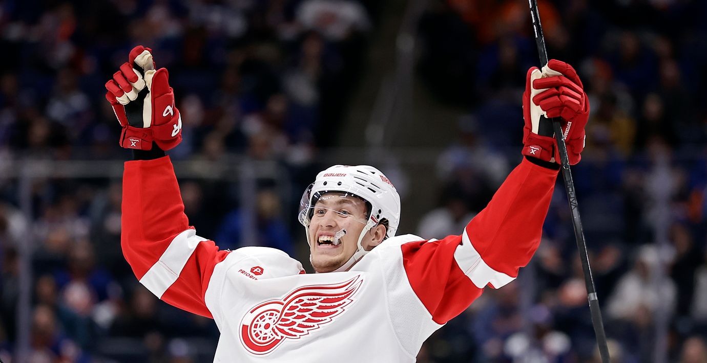 Backen Albert Johansson spelade fram till Dylan Larkin som kvitterade till 2–2 i tredje perioden. Det var Johanssons elfte NHL-match och hans första poäng.