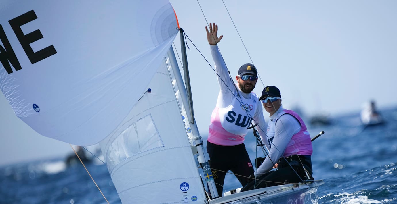 Medaljloppet för de svenska seglarna Anton Dahlberg och Lovisa Karlsson blir inte av i dag. Den svenska duon, som ligger fyra inför den sista seglatsen och har medaljchans, skulle egentligen ha gett sig ut klockan 15.43.