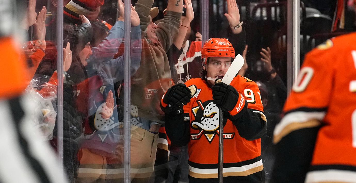 Leo Carlsson gjorde poäng för tionde matchen i rad när hans Anaheim slog Winnipeg med 4–1 i natt. Svensken gjorde två mål efter att ha stått för två mål mot Vegas kvällen före.