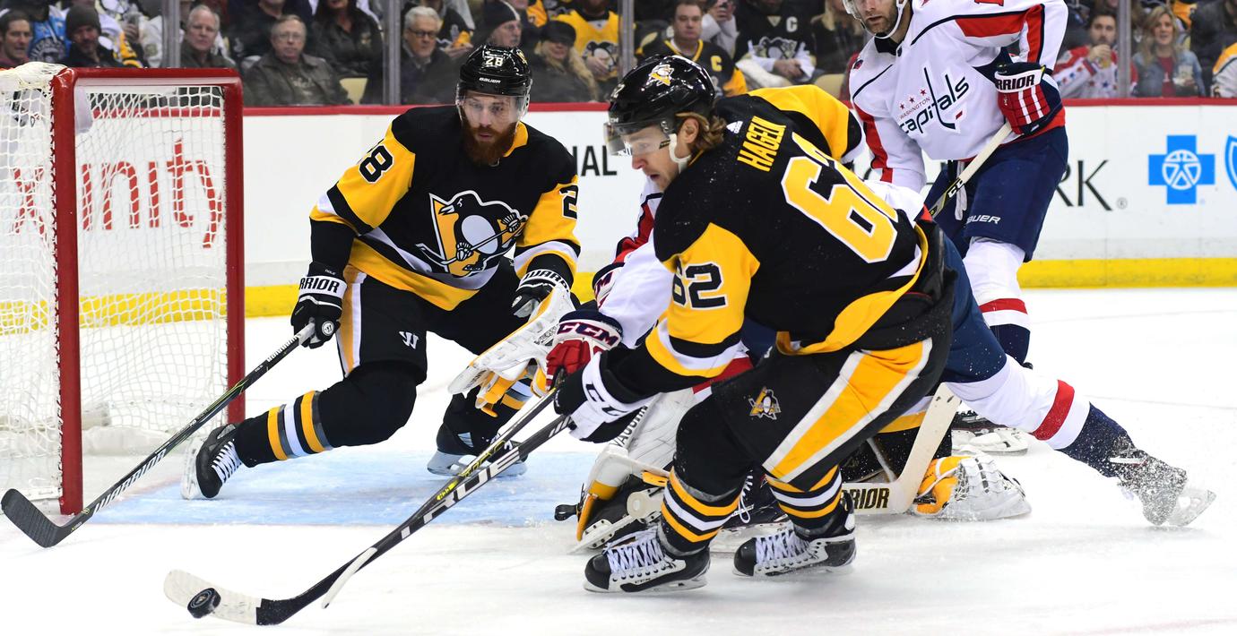 Carl Hagelin och Patric Hörnqvist hade båda viktiga roller när deras Pittsburgh slog rivalerna Washington med 7–4.