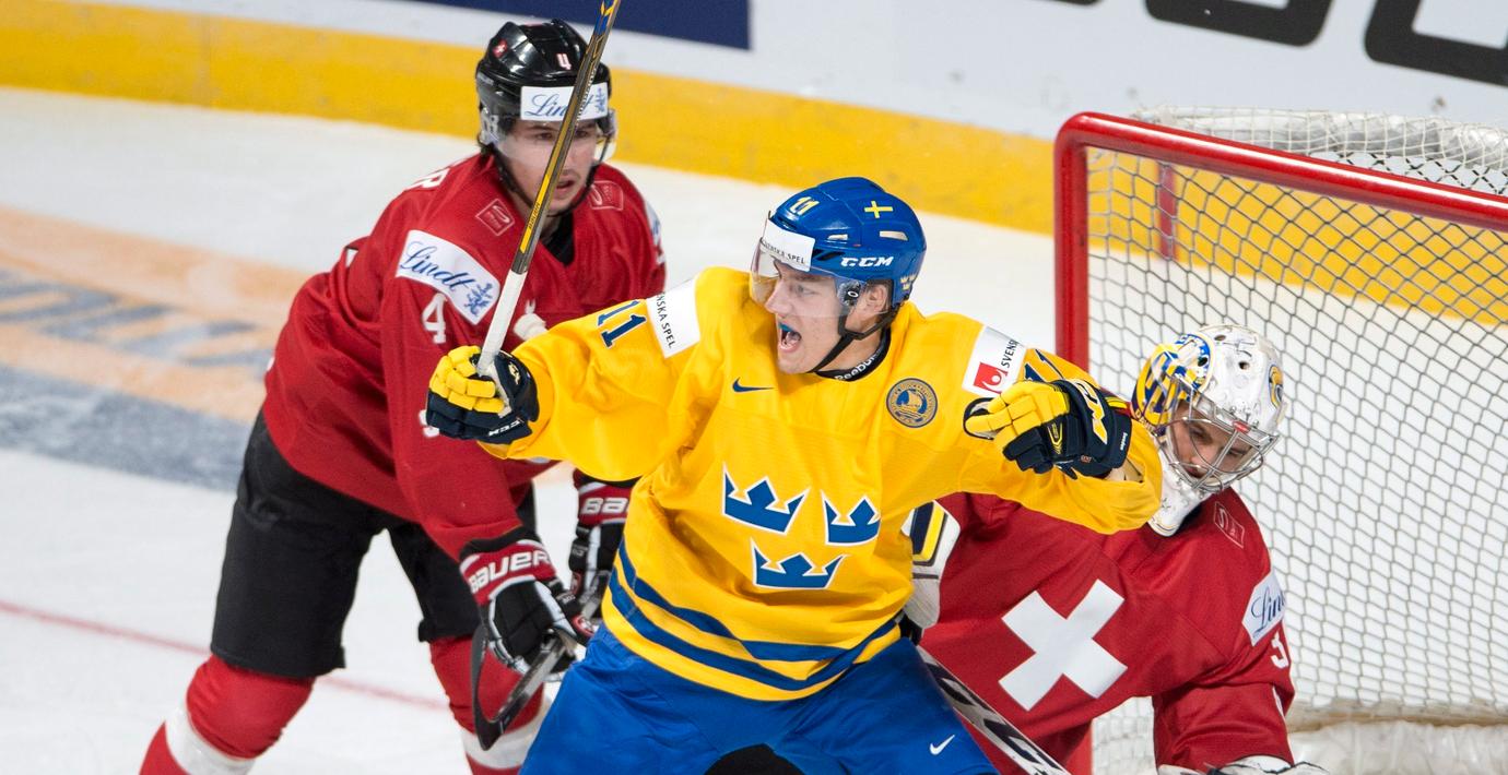 Sverige vann med 4–2 mot Schweiz i JVM. Men länge såg det ut att bli oavgjort. Efter den andra perioden stod det 2–2 och resultatet höll i sig ända till slutminuterna då fört Joel Eriksson Ek och sedan Lucas Carlsson satte varsin balja.