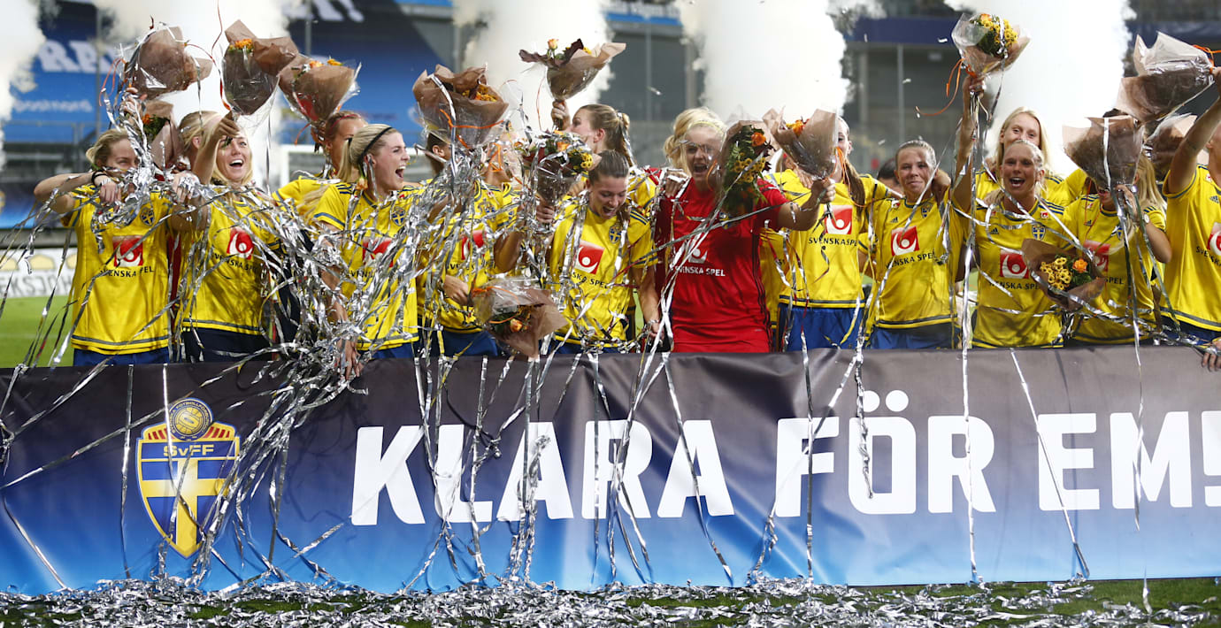 Sverige är klara för fotbolls-EM i Nederländerna nästa sommar efter 2-1 mot Slovakien inför över 11 000 personer på Gamla Ullevi i kväll.