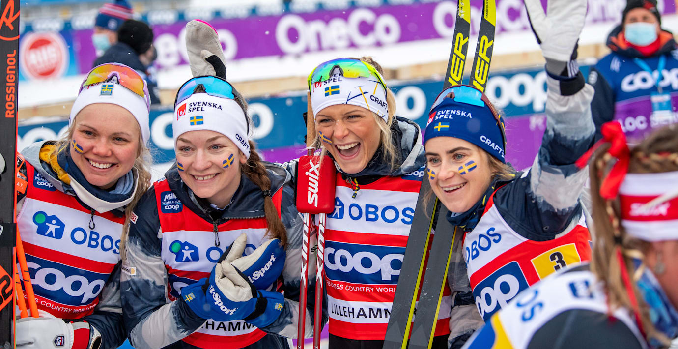 Sveriges damlag slog Norge i skidstafetten i världscuptävlingarna i Lillehammer och kom på en andraplats strax efter det ryska laget. Det var Moa Olsson som körde den avslutande sträckan för Sverige. Ett osäkert kort enligt SVT Sport.