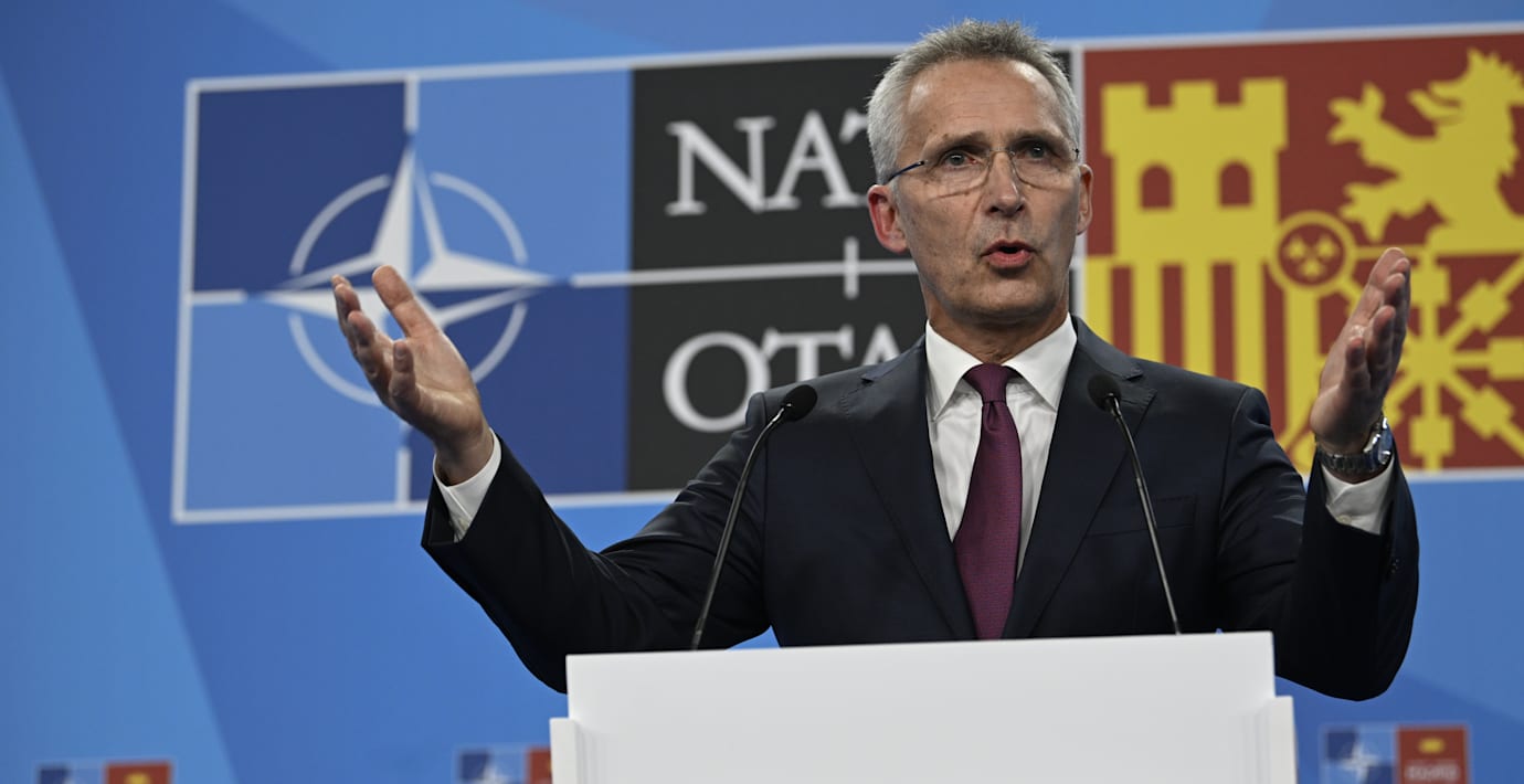 – I dag har Natoledarna tagit det historiska beslutet att bjuda in Finland och Sverige till Nato, säger Natos generalsekreterare Jens Stoltenberg på en presskonferens.
