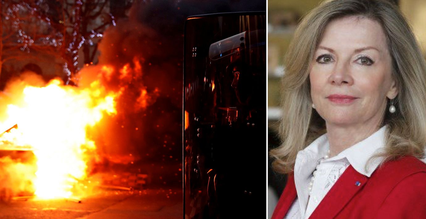Några demonstranter tände en eld utanför Sveriges ambassad i Paris under Gula västarnas protester i dag. Det fick ambassadören Veronika Wand-Danielsson att reagera.