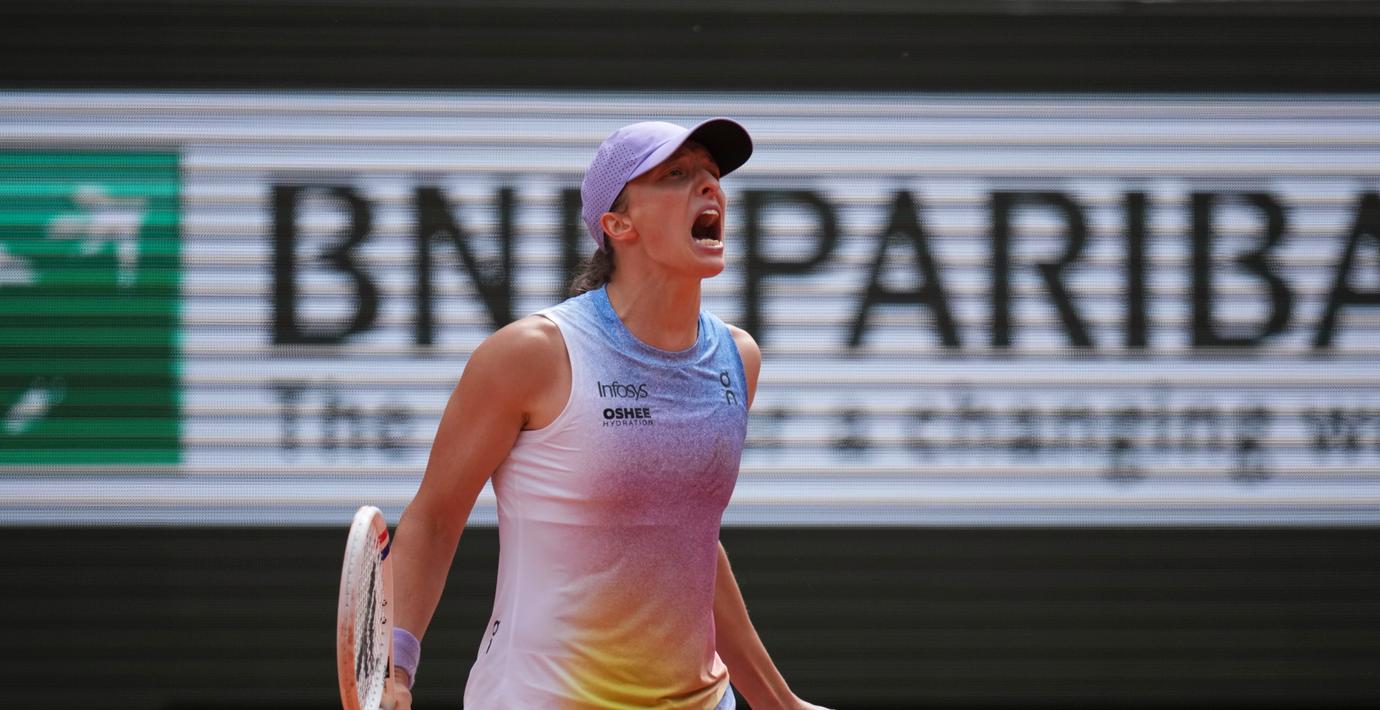 Polskan Iga Swiatek såg ut att få sina drömmar om en ny Franska öppna-titel krossade när hon ställdes mot Jelena Rybakina från Kazakstan i åttondelsfinal. Den tidigare världsettan, som haft en kämpig säsong, förlorade första set med 1–6 och låg under med 0–2 i andra när vändningen kom.