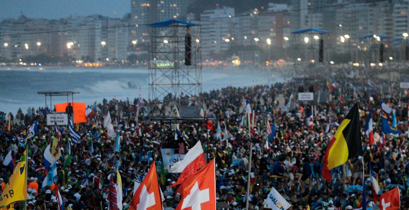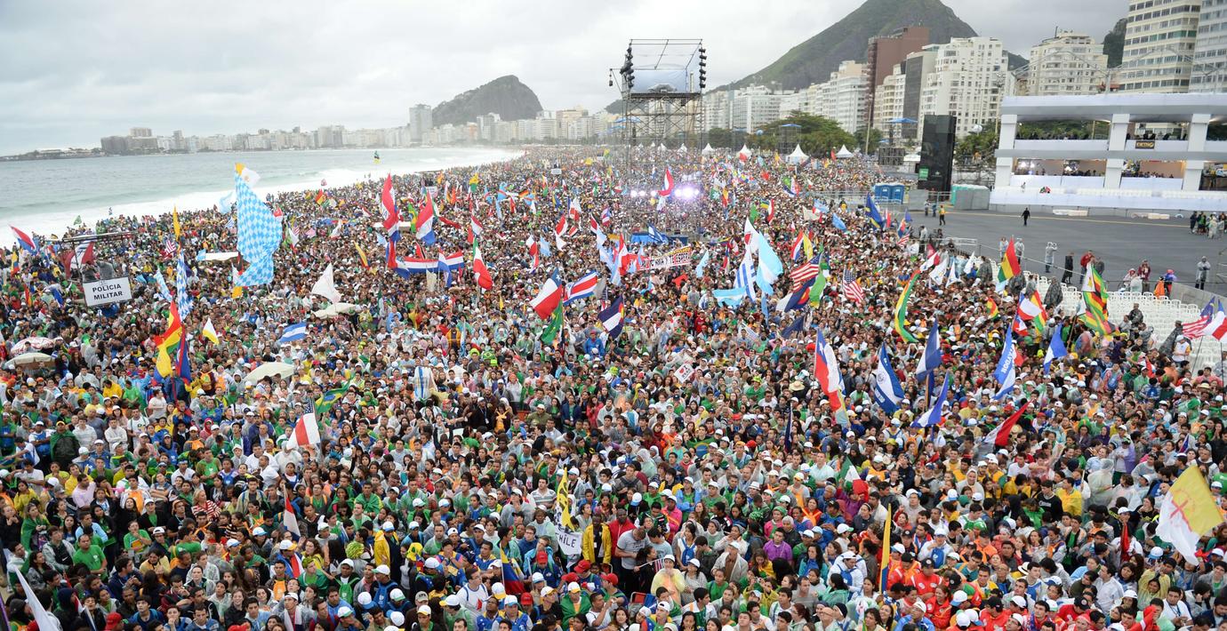 Medan påve Franciskus vilade på den andra dagen av sin besök i Brasilien anordnades en enorm gudstjänst på den berömda stranden Copacabana i Rio de Janeiro. Enligt beräkningar hade 560 000 pilgrimer samlats. Påven skickade en hälsning på Twitter till sina anhängare. ”Kristus har förtroende för er”, skrev han bland annat.