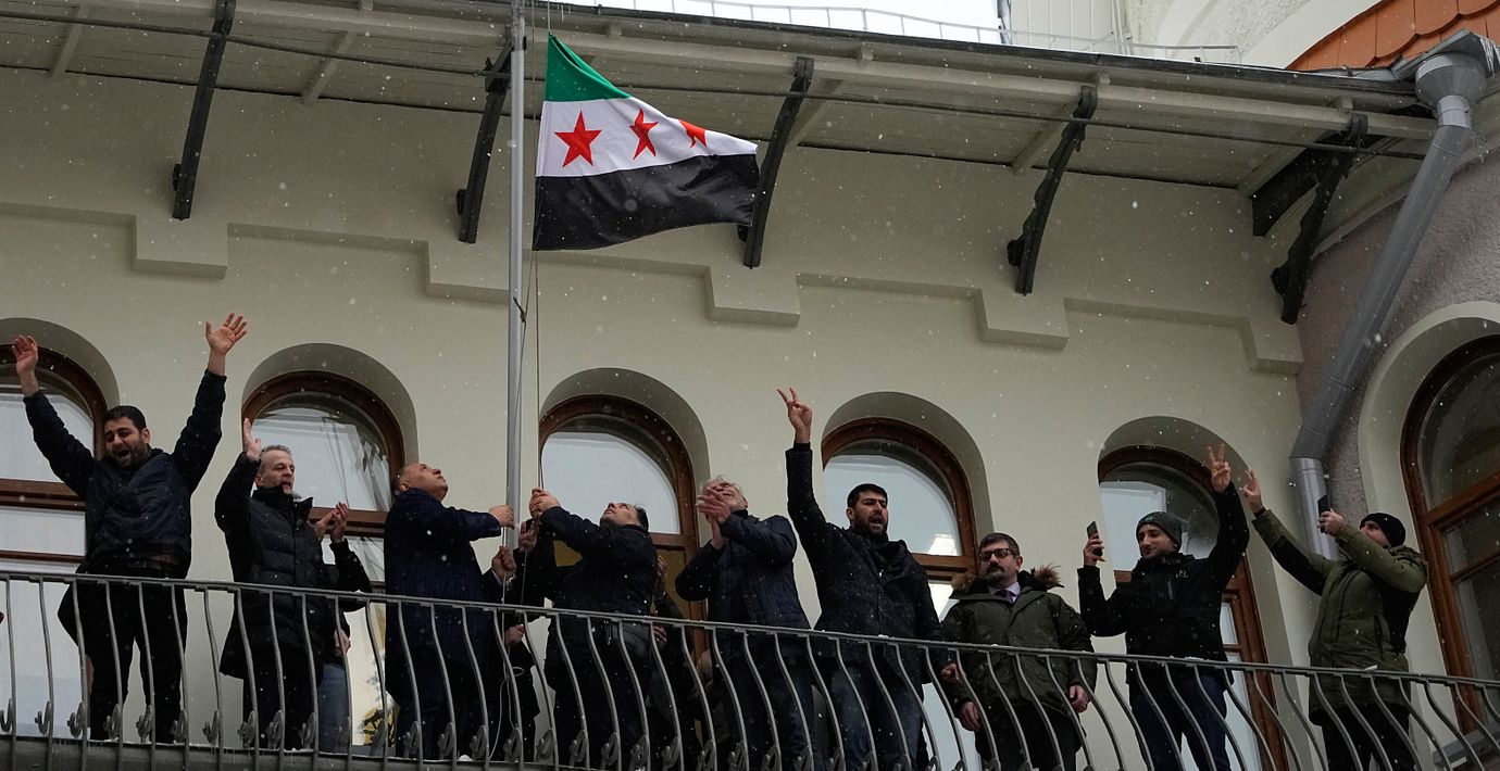 Syrisk rebellflagga hissad vid ambassaden i Moskva