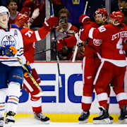 Niklas Kronwall klev fram som matchhjälte när han slog in 4–3-målet i Detroits seger över Edmonton i nattens NHL-omgång.