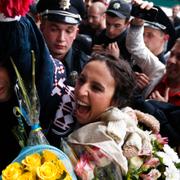 Jamala har blivit superkändis över en natt i hemlandet Ukraina och under intervjun blir hon hela tiden uppvaktad av fans. Somliga påstår att sången är en allegori över Rysslands annektering av Krim, skriver DN. Något som sångerskan inte förnekar.