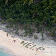 Män på öde ö räddades av nödrop i sanden