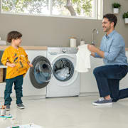 Varje år tillbringar många svenskar otaliga timmar med hushållssysslor, tid som många gärna hade använt annorlunda. Att hitta utrymme för barnhämtning och fix där hemma utan att tumma på fritidsintressen kan bli en utmaning. Nu har Samsung utvecklat QuickDrive, en tvättmaskin som tvättar lika rent på halva tiden*. Hemligheten bakom den snabbare tvätten är bland annat effektivare tvätt- och sköljmetoder samt den skonsamma trumman. Trumman består av en stor huvudtrumma försedd med en bakplatta som rör sig självständigt, i samma eller i motsatt riktning från huvudtrumman och på så vis skapas en mer effektiv tvättcykel och du får ett utmärkt tvättresultat på kortare tid.