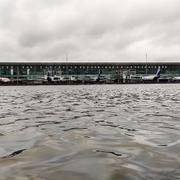 Översvämmat på Calcuttas flygplats efter cyklonen
