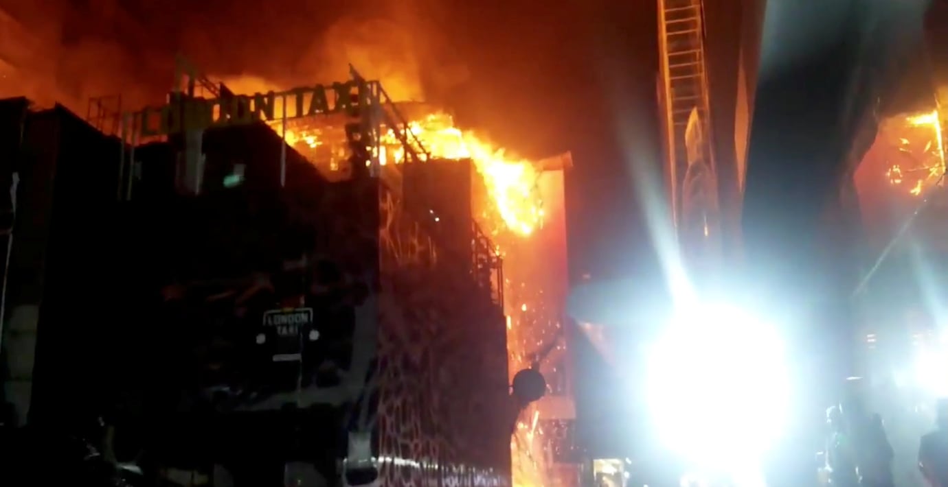 Branden spred sig snabbt i byggnaden där det ligger flera restauranger, kontor, hotell och affärslokaler. Enligt lokala medier stod hela byggnaden i lågor inom 30 minuter.