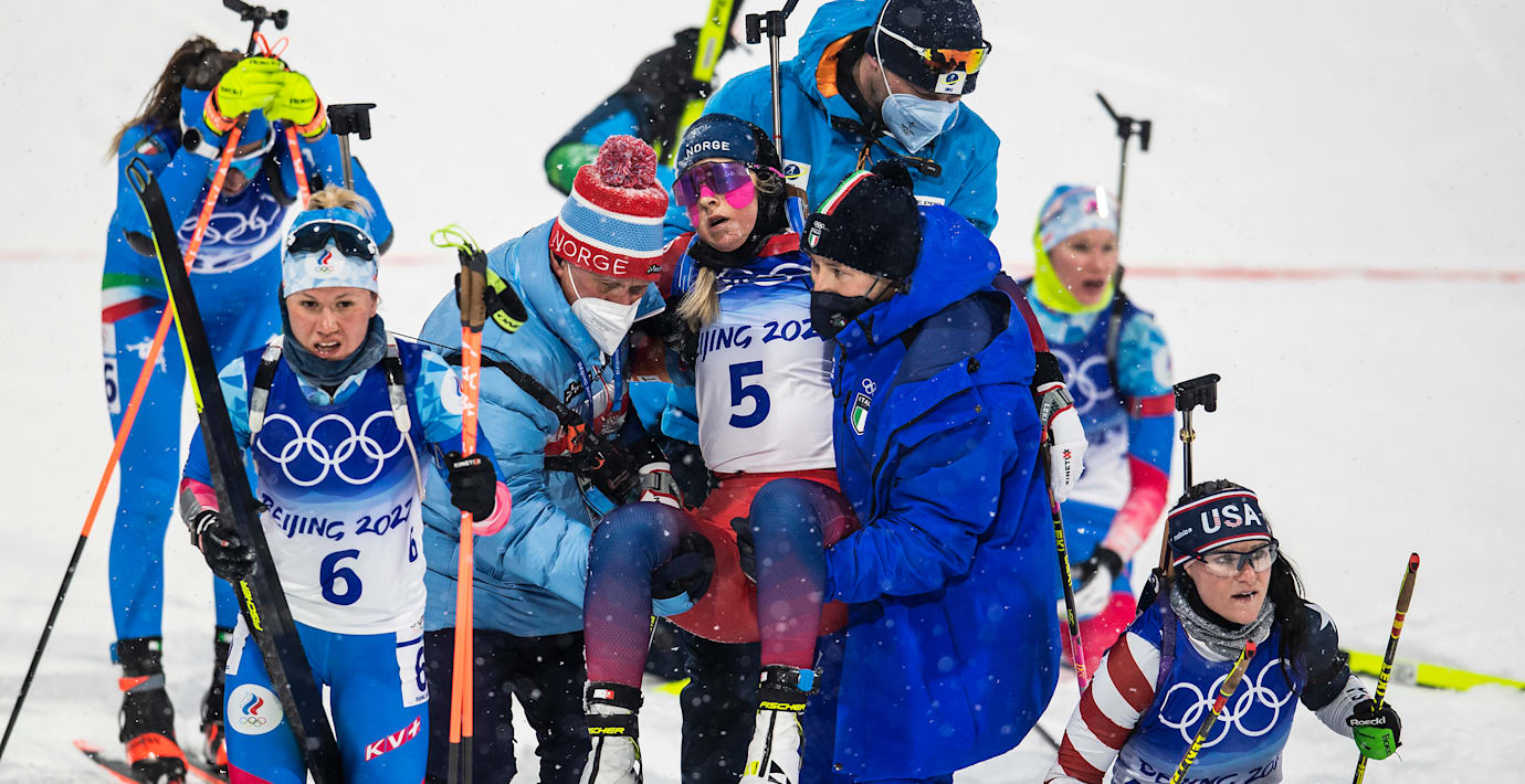 Eftersom det var landsmaninnan Tiril Eckhoff som gick om var det många som trodde att Tandrevold tog bronsmedaljen. Först någon minut senare insåg Discovery sitt misstag när Tandrevold släpade sig in i mål som 14:e kvinna. Efter målgång fick hon bäras ut av norska ledare.