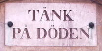 Natten till lördag placerade någon ut hemmasnickrade skyltar med uppmaningen om att just ”tänka på döden”.