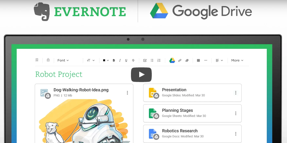 Anteckningstjänsten Evernote och Google har aviserat ett förtätat samarbete, som i korthet går ut på att man nu erbjuder möjligheten att komma åt filer som ligger på Google Drive direkt via Evernote-appen.